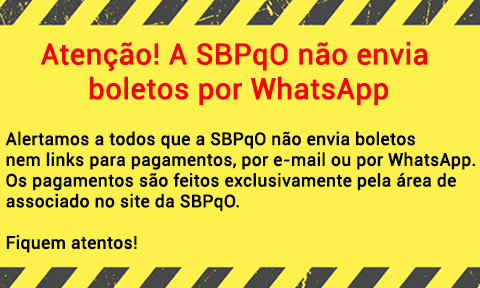 Alertamos a todos que a SBPqO não envia cobranças com links para pagamentos por E-mail, WhatsApp ou por correspondência. Também não é solicitado atualização de dados ou imagem de documentos pessoais por esses canais.